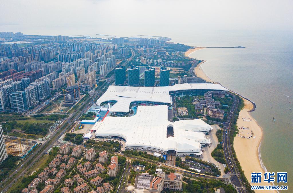 4月10日拍攝的第三屆中國國際消費品博覽會舉辦地——海南國際會展中心(無人機照片)。當日,第三屆中國國際消費品博覽會在海南??陂_幕。本屆消博會以“共享開放機遇、共創(chuàng)美好生活”為主題,將助力消費恢復(fù)和升級,為各國企業(yè)共享中國市場提供機遇。新華社記者 蒲曉旭 攝