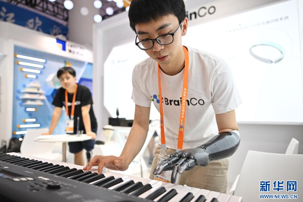 4月10日,參展商在消博會浙江展臺展示一款智能仿生手。當日,第三屆中國國際消費品博覽會在海南海口開幕。本屆消博會以“共享開放機遇、共創(chuàng)美好生活”為主題,將助力消費恢復(fù)和升級,為各國企業(yè)共享中國市場提供機遇。新華社記者 郭程攝