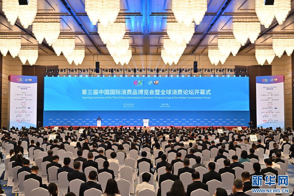 第三屆中國國際消費品博覽會開幕,這是4月10日拍攝的開幕式現(xiàn)場。當日,第三屆中國國際消費品博覽會在海南??陂_幕。本屆消博會以“共享開放機遇、共創(chuàng)美好生活”為主題,將助力消費恢復(fù)和升級,為各國企業(yè)共享中國市場提供機遇。新華社記者 李鑫 攝