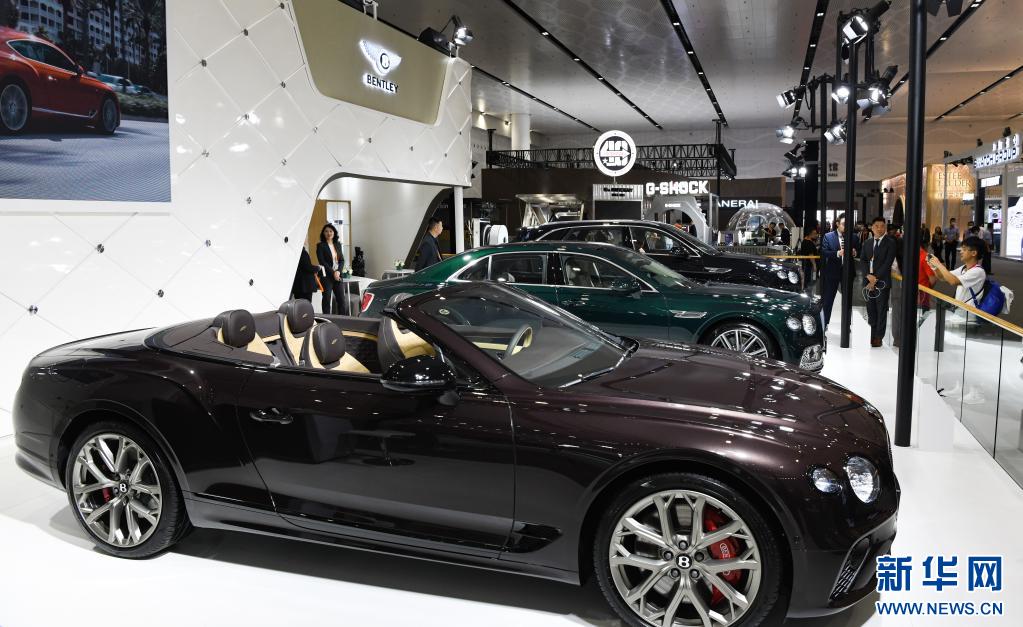 4月10日,觀眾在第三屆消博會現(xiàn)場參觀展出的賓利汽車。當日,第三屆中國國際消費品博覽會在海南??陂_幕。本屆消博會以“共享開放機遇、共創(chuàng)美好生活”為主題,將助力消費恢復(fù)和升級,為各國企業(yè)共享中國市場提供機遇。新華社記者 楊冠宇 攝
