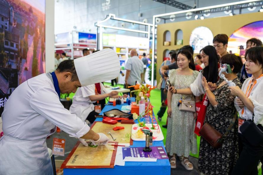 9月15日,在長沙國際會展中心,參展商在展示廚藝。
