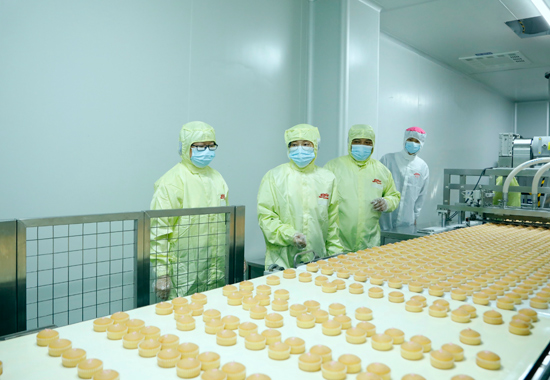 市場(chǎng)監(jiān)管部門駐點(diǎn)監(jiān)管人員深入食品生產(chǎn)車間進(jìn)行現(xiàn)場(chǎng)檢查。何正君攝