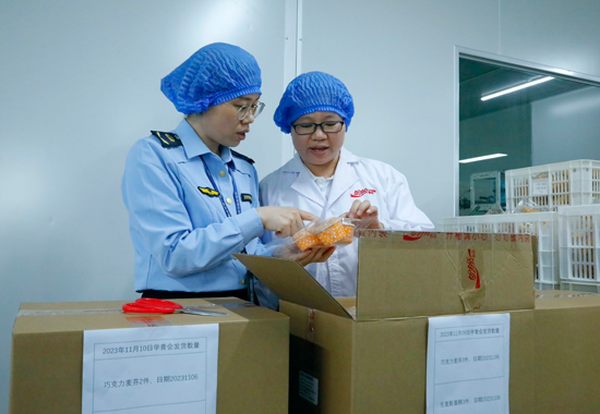 “這個(gè)產(chǎn)品的生產(chǎn)日期是11月6日,你們對(duì)該批次生產(chǎn)的產(chǎn)品抽檢過了嗎?”“當(dāng)天生產(chǎn)出來就已經(jīng)抽檢了,包括我們自己的一個(gè)出廠檢驗(yàn)和第三方檢驗(yàn)機(jī)構(gòu)抽檢……”11月8日,在南寧經(jīng)開區(qū)一家糕點(diǎn)生產(chǎn)企業(yè),南寧市市場(chǎng)監(jiān)管局經(jīng)開分局駐點(diǎn)監(jiān)管人員正在對(duì)準(zhǔn)備發(fā)往學(xué)青會(huì)運(yùn)動(dòng)員村的糕點(diǎn)進(jìn)行開箱檢查,重點(diǎn)查看糕點(diǎn)的標(biāo)簽、生產(chǎn)記錄等。