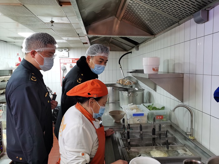 “這張健康證還有不到一個月就到期了,記得提醒工作人員抓緊辦理新的證件”“消毒柜對餐具進行消毒后,應(yīng)該關(guān)閉柜門,不能長時間裸露”“案板和刀具要進行色標(biāo)管理,不同的食品要使用不同的案板和刀具”,在這家牛肉燒餅店,市場監(jiān)管人員重點對外賣訂餐平臺公示信息是否真實全面、入網(wǎng)商戶是否持有效許可資質(zhì)、場所環(huán)境是否清潔衛(wèi)生、原料采購是否合法規(guī)范、加工制作和包裝配送是否符合食品安全要求等方面進行了檢查,現(xiàn)場指出問題,并提醒商家進行整改。