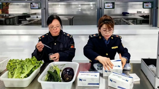 活動(dòng)現(xiàn)場(chǎng),尚義縣市場(chǎng)監(jiān)督管理局工作人員設(shè)立快速檢測(cè)服務(wù)臺(tái),演示“你點(diǎn)我檢,你送我檢”快檢方式,現(xiàn)場(chǎng)按照食品安全監(jiān)督抽檢程序要求,對(duì)食堂的蔬菜、肉類、調(diào)料等開(kāi)展快檢。