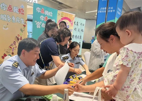 從菜場買回的農產品是否有農藥殘留?夏季經常購買的涼拌菜是否能放心食用?食用一些食品添加劑是否安全……在宣傳周啟動現(xiàn)場,不少市民來到區(qū)市場監(jiān)管局特設的“你點我檢”食品抽檢展臺前詢問。針對大家的疑問,工作人員向市民詳細講解食品安全檢查工作內容、抽樣檢驗流程,熱情解答了各類食品安全問題。