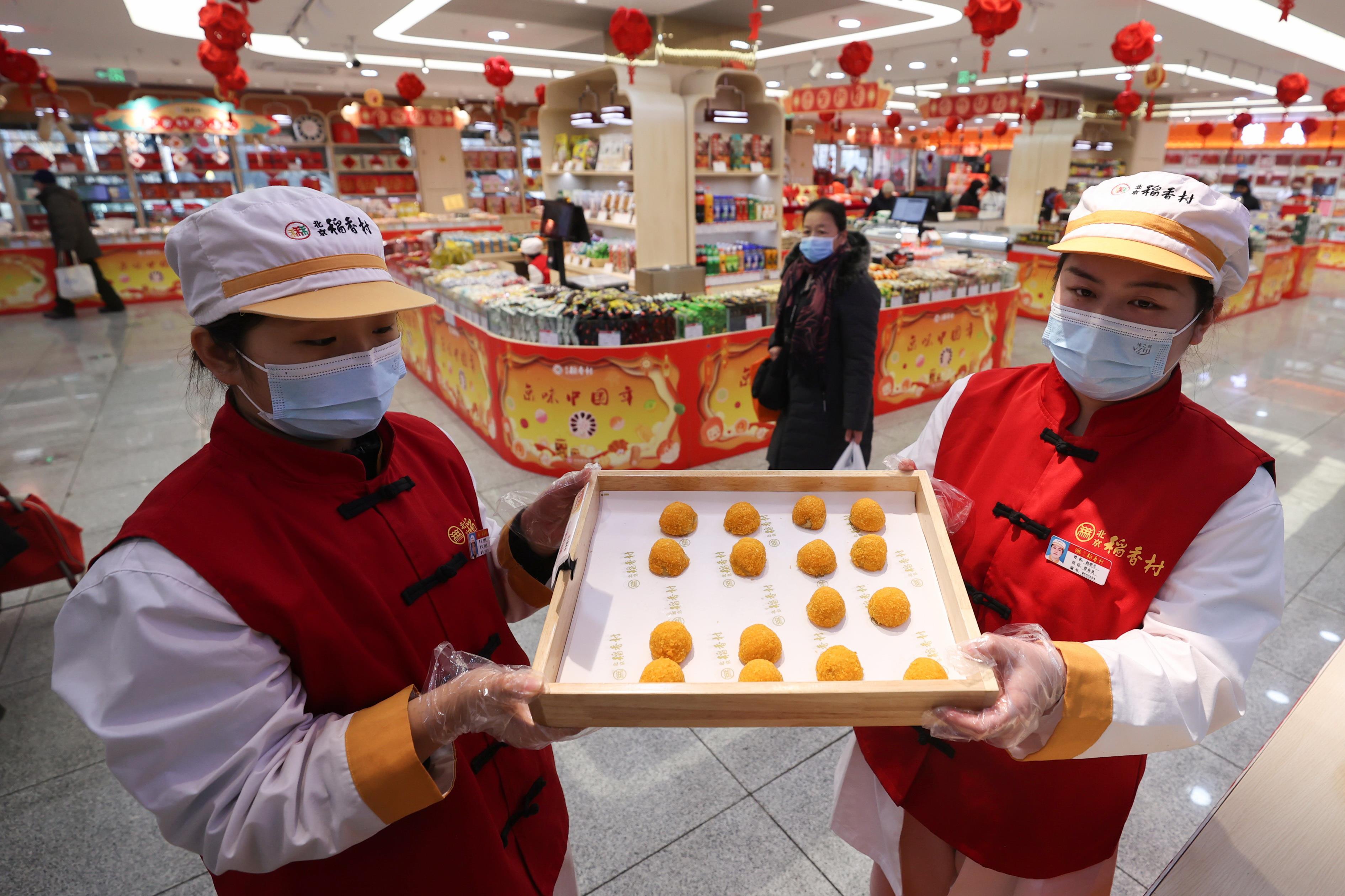 湯圓又有新吃法。近日,北京一家中華老字號(hào)糕點(diǎn)店門口,消費(fèi)者在其元宵湯圓柜臺(tái)前排起了長(zhǎng)隊(duì)。記者了解到,該店在原有口味的基礎(chǔ)上,又特別推出了現(xiàn)烤黃米湯圓,其獨(dú)特的風(fēng)味吸引眾多顧客前來嘗鮮。(董芳忠)