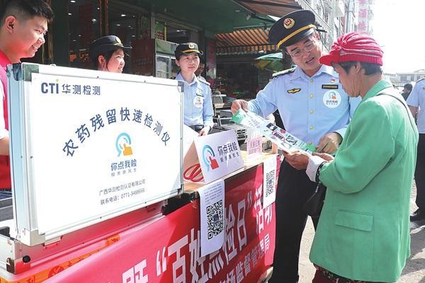 近日,廣西壯族自治區(qū)防城港市市場監(jiān)管局聯(lián)合東興市市場監(jiān)管局開展“你點(diǎn)我檢 服務(wù)惠民生”暨“百姓點(diǎn)檢日”活動,共同走進(jìn)東興市江平鎮(zhèn)民族市場,通過科普宣傳、現(xiàn)場快檢、監(jiān)督抽檢等形式,為公眾的“菜籃子”安全保駕護(hù)航。