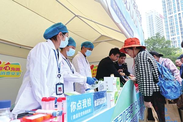 圖為相關(guān)工作人員正在快檢食材。何正君 攝