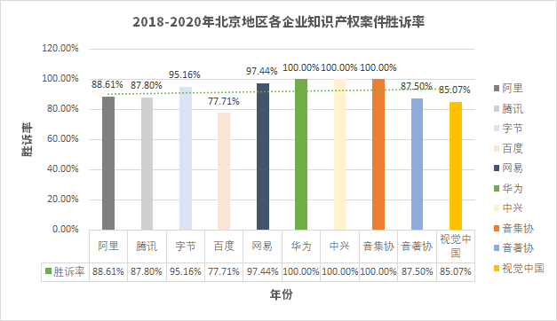 1、互聯(lián)網(wǎng)企業(yè)在北京地區(qū)知識產(chǎn)權(quán)案件勝訴率情況