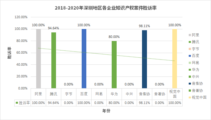 3、互聯(lián)網(wǎng)企業(yè)在深圳地區(qū)知識產(chǎn)權(quán)案件勝訴率情況