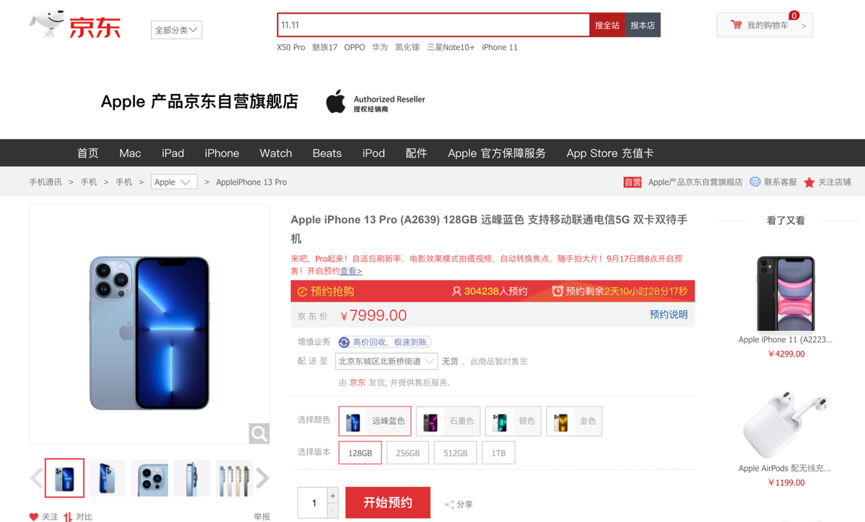 9月15日凌晨1點(diǎn),Apple秋季發(fā)布會(huì)正式召開,帶來了iPhone 13系列、Apple Watch Series 7、新款iPad、新款iPad mini等新品。其中備受果粉期待的iPhone13系列憑借優(yōu)秀的性能受到大家青睞。據(jù)了解,今早京東頁(yè)面上線后,僅1小時(shí),iPhone13系列預(yù)約人數(shù)已突破20萬。