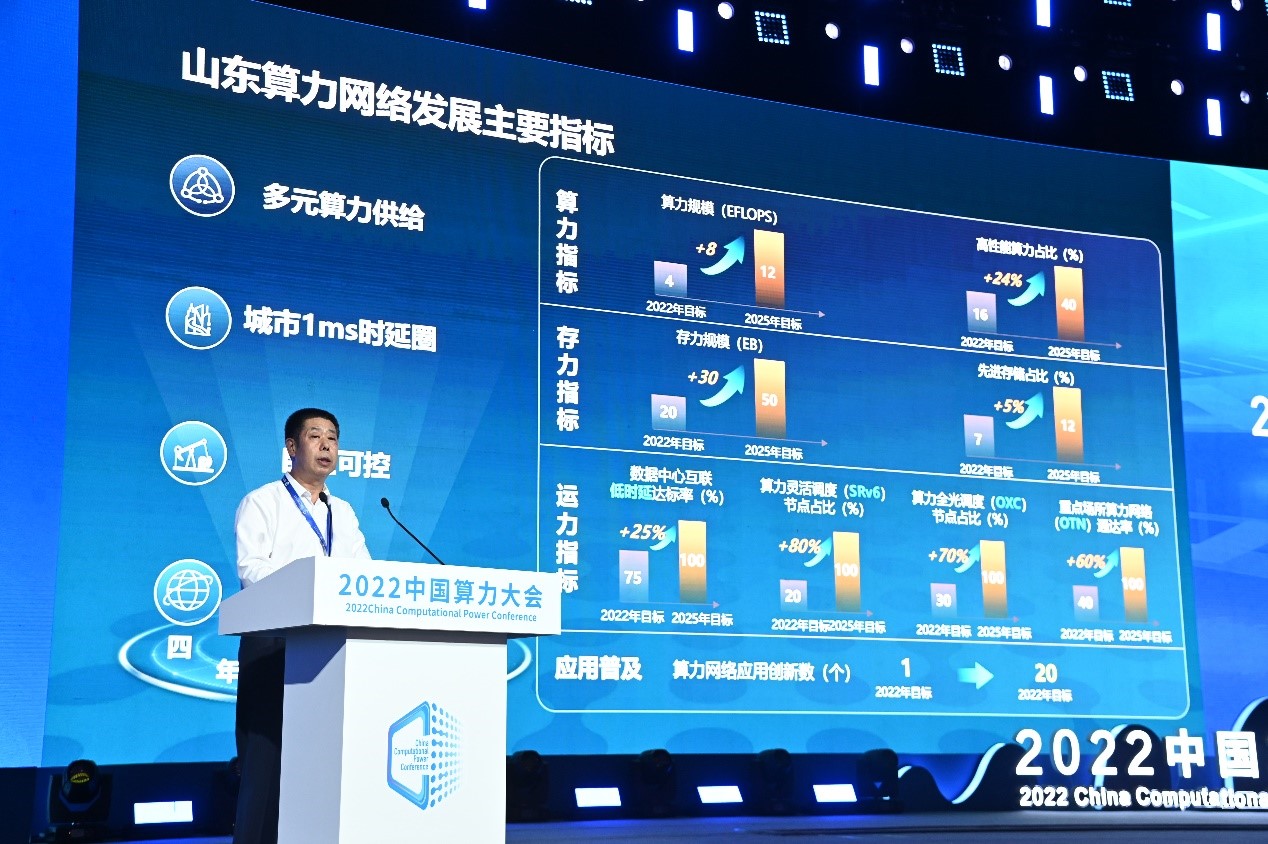 據(jù)山東省通信管理局張洪溢局長(zhǎng)介紹,《山東一體化算力網(wǎng)絡(luò)建設(shè)行動(dòng)方案(2022-2025年)》明確了4項(xiàng)具體目標(biāo):算力供給均衡合理、存力保障安全可靠、運(yùn)力網(wǎng)絡(luò)優(yōu)質(zhì)互聯(lián)、算力網(wǎng)絡(luò)應(yīng)用創(chuàng)新。一是穩(wěn)步提升全省算力規(guī)模,2025年全省數(shù)據(jù)中心總算力超過12EFLOPS,高性能算力占比達(dá)到40%,國(guó)產(chǎn)化算力達(dá)到90%;二是系統(tǒng)構(gòu)建存力基礎(chǔ)設(shè)施,2025年存力規(guī)模達(dá)到50EB,先進(jìn)存儲(chǔ)占比12%;三是持續(xù)夯實(shí)運(yùn)力聯(lián)接底座,到2025年,全面構(gòu)建省會(huì)經(jīng)濟(jì)圈、膠東經(jīng)濟(jì)圈、魯南經(jīng)濟(jì)圈3毫秒時(shí)延圈,16地市1毫秒時(shí)延圈,全省數(shù)據(jù)中心、核心傳輸站點(diǎn)實(shí)現(xiàn)SRv6核心路由器、全光交換(OXC)傳輸設(shè)備全覆蓋,商務(wù)樓宇和產(chǎn)業(yè)園區(qū)實(shí)現(xiàn)OTN光接入終端全覆蓋;四是深化推動(dòng)算力網(wǎng)絡(luò)應(yīng)用創(chuàng)新,結(jié)合省內(nèi)產(chǎn)業(yè)特點(diǎn),到2025年打造20個(gè)可規(guī)模復(fù)制的算力網(wǎng)絡(luò)標(biāo)桿應(yīng)用。
