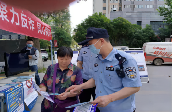 為有效遏制電信網(wǎng)絡(luò)詐騙違法犯罪,近日,陜西省西安市公安局蓮湖分局土門派出所社區(qū)民警走進(jìn)商戶、企業(yè)開展反詐宣傳活動。(王拓)