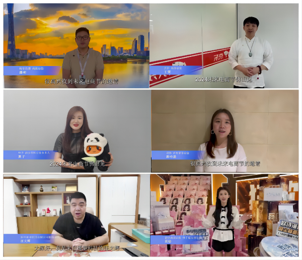 會上,來自淘寶直播、京東、快手、得物等互聯(lián)網(wǎng)電商平臺代表以及來自遙望科技、嘉星集團(tuán)的MCN機(jī)構(gòu)代表通過視頻為2024未來電商節(jié)送上了祝福寄語。