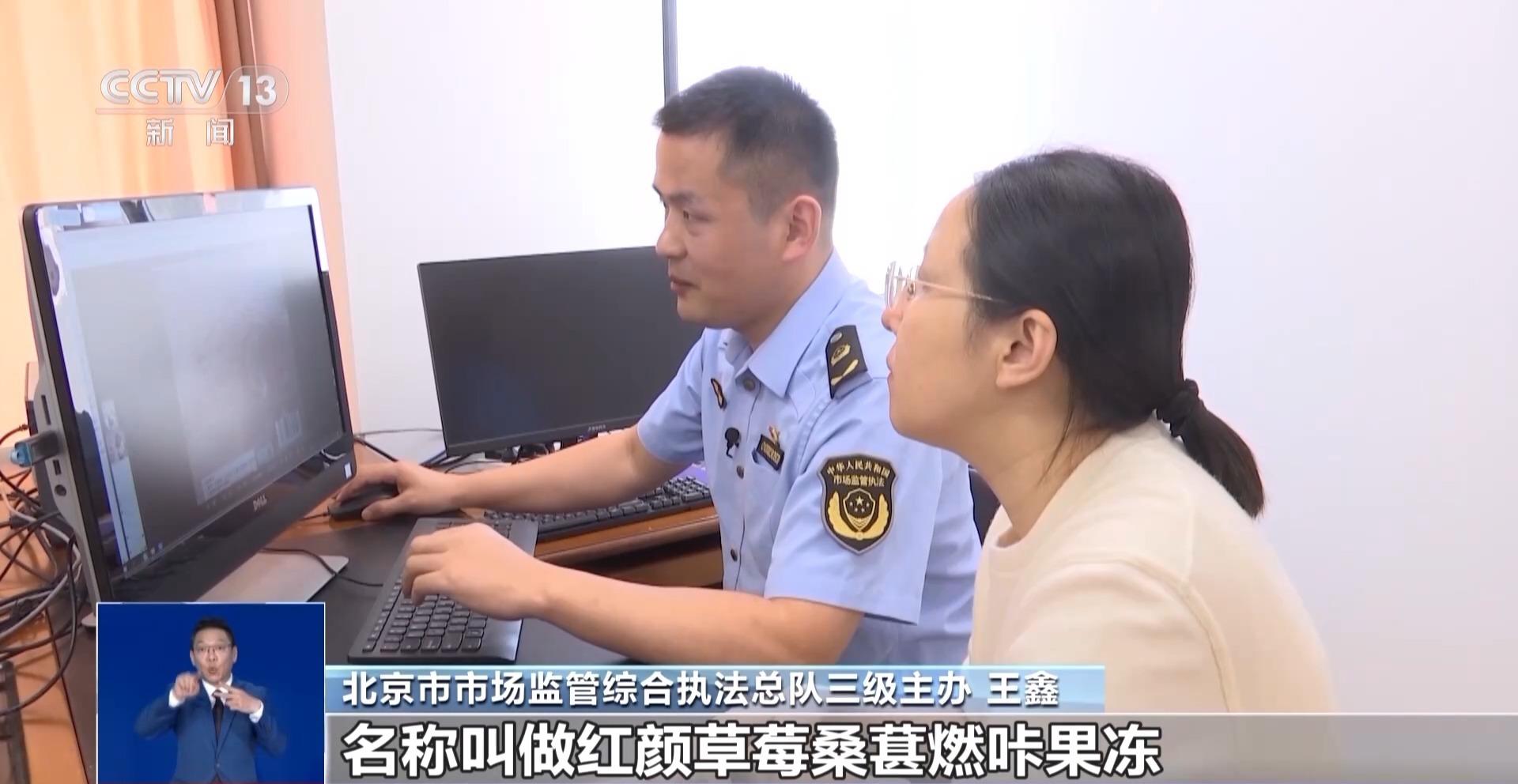 北京市市場監(jiān)管綜合執(zhí)法總隊(duì)三級(jí)主辦 王鑫:我們可以看到這款產(chǎn)品的名稱叫作紅顏草莓桑葚燃咔果凍,它有食品生產(chǎn)許可證的編號(hào),沒有保健食品的藍(lán)帽子標(biāo)志,也沒有藥品的生產(chǎn)許可證,它只是一款普通的食品。