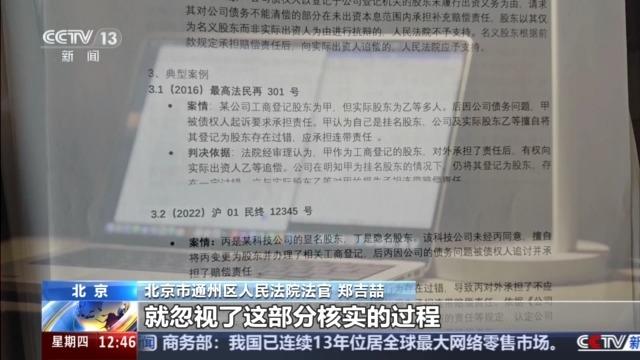 北京市通州區(qū)人民法院法官 鄭吉喆:特別是當(dāng)時(shí)她援引了上海一中院的2022滬01民終12345號(hào),這是一個(gè)民間借貸的案件,這個(gè)跟現(xiàn)在原告代理人向我們提交的股權(quán)代持是一點(diǎn)關(guān)系都沒(méi)有,可以說(shuō)叫風(fēng)馬牛不相及。