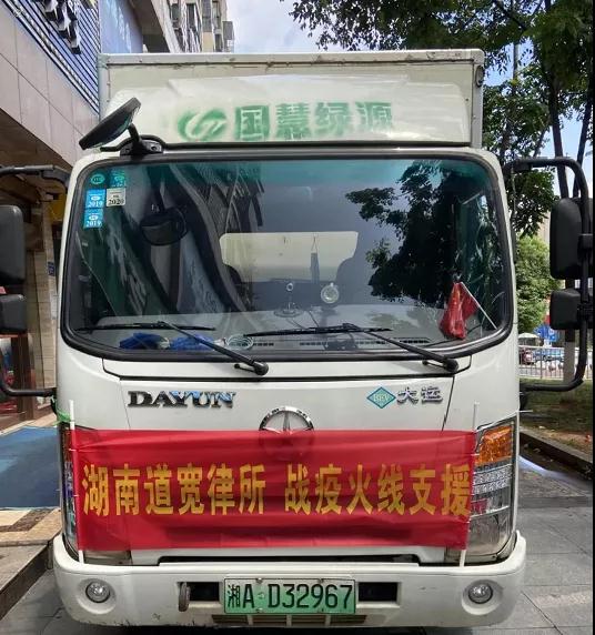 湖南道寬律師事務(wù)所黨支部組織律所全體黨員、律師及工作人員開展募捐活動(dòng),并將募集的3萬(wàn)余元善款用于購(gòu)買防疫物資,8月6日雇車將7000個(gè)口罩、1噸消毒液和酒精、1000對(duì)防疫手套等物資送往長(zhǎng)沙縣黃花鎮(zhèn),支持村民抗擊疫情。