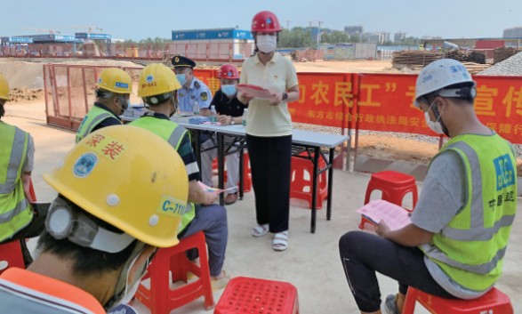 這樣的討薪案,丁明已經(jīng)處理了很多。在安徽,她長期負(fù)責(zé)牽頭組織全省各級法律援助機(jī)構(gòu)開展農(nóng)民工維權(quán)專項(xiàng)行動,深知從源頭預(yù)防的重要性。于是到東方市后,她積極開展“民法典進(jìn)工地”等法律宣傳活動,普及民法典中的相關(guān)法律知識,編印了勞動法律知識問答宣傳手冊,引導(dǎo)農(nóng)民工學(xué)法守法、依法維權(quán)。
