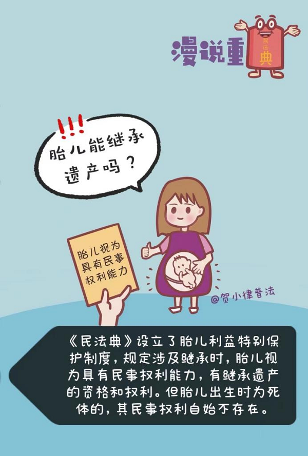《中華人民共和國民法典》第十六條 【胎兒利益保護(hù)】涉及遺產(chǎn)繼承、接受贈與等胎兒利益保護(hù)的,胎兒視為具有民事權(quán)利能力。但是,胎兒娩出時(shí)為死體的,其民事權(quán)利能力自始不存在。