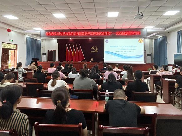 為做好新修訂婦女權(quán)益保障法的貫徹實(shí)施,提升婦女知法、懂法、普法、用法能力,8月18日,由安徽省合肥市肥西縣婦聯(lián)主辦、紫蓬鎮(zhèn)婦聯(lián)承辦的“綻放自我·婦女法與我們同行”暨婦聯(lián)干部講法實(shí)踐活動(dòng)在紫蓬鎮(zhèn)開展。肥西縣婦聯(lián)副主席、鎮(zhèn)村婦聯(lián)主席、婦聯(lián)執(zhí)委、律師、機(jī)關(guān)女干部、企業(yè)女職工、婦女群眾等80余人參加。