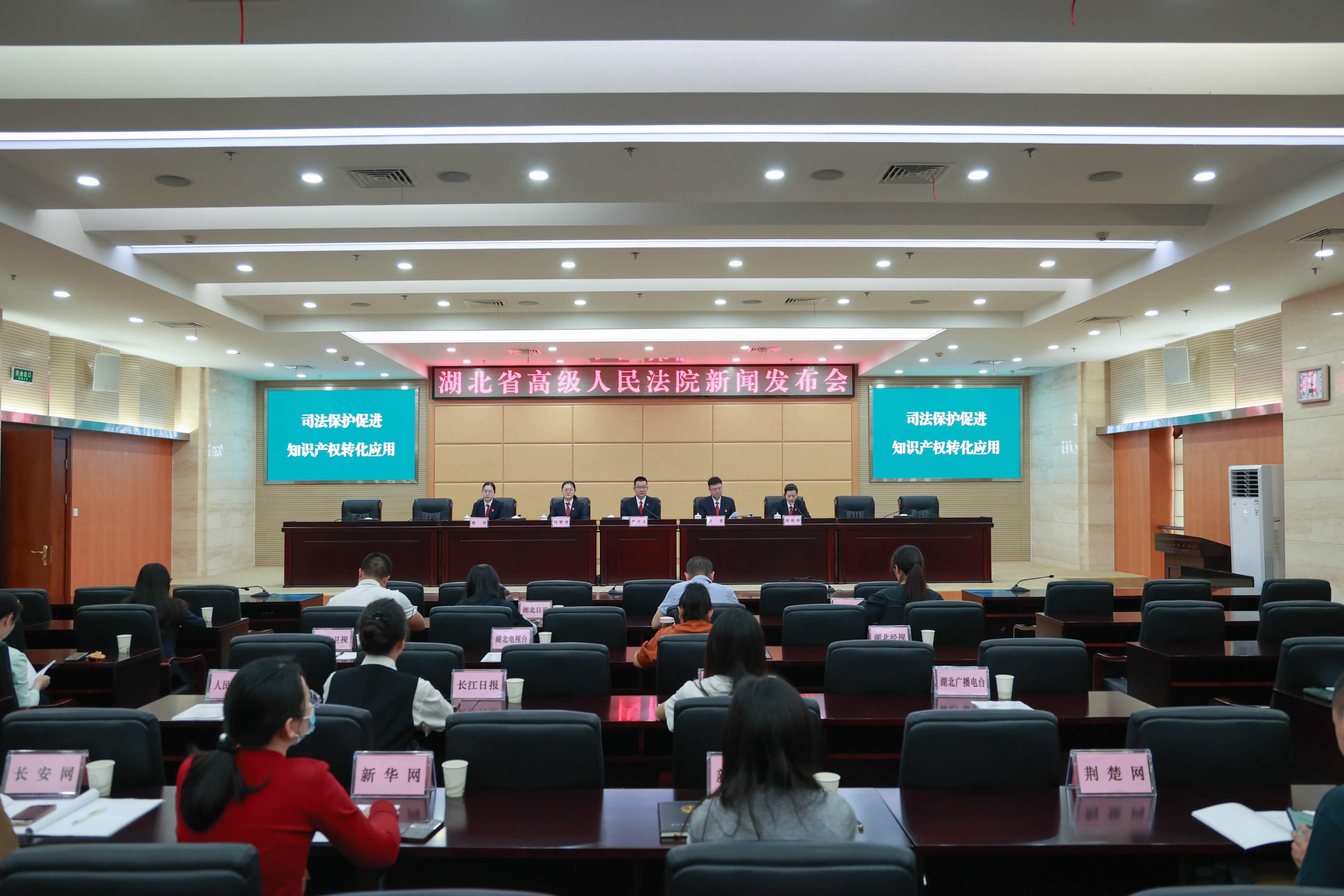 圖為湖北省高級(jí)人民法院新聞發(fā)布會(huì)現(xiàn)場(chǎng)。