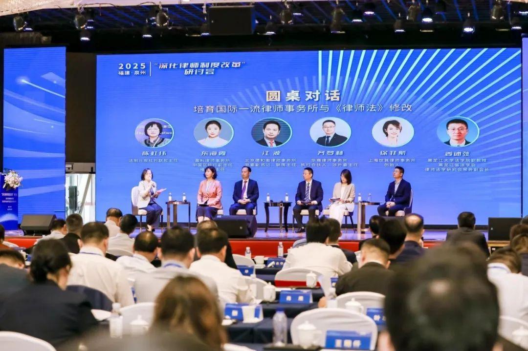 在圓桌對(duì)話環(huán)節(jié)中,盈科律師事務(wù)所中國(guó)區(qū)執(zhí)行副主任、盈科福建區(qū)主任東海霞、北京德和衡律師事務(wù)所黨委副書(shū)記、聯(lián)席主任江波、華商律師事務(wù)所執(zhí)行合伙人、涉外委主任齊夢(mèng)林、上海世其律師事務(wù)所創(chuàng)始人 徐菲繁、黑龍江大學(xué)法學(xué)院副教授、黑龍江省法學(xué)會(huì)律師法學(xué)研究會(huì)常務(wù)副會(huì)長(zhǎng)姜述弢圍繞“培育國(guó)際一流律師事務(wù)所與律師法修改”進(jìn)行交流,法制日?qǐng)?bào)社外聯(lián)部主任陳虹偉主持。