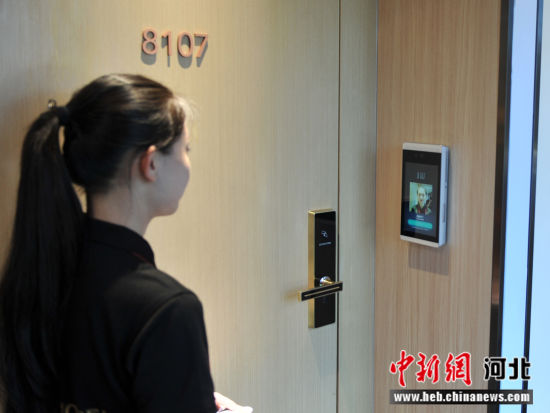在新區(qū)第一家智慧酒店中,入住酒店的客人通過一臺大小類似于ATM機的“智慧前臺”機器,只要把身份證放到人臉識別自證系統(tǒng)中,臉部對準攝像頭,不到幾秒鐘的時間系統(tǒng)就能快速準確地識別出是否人證合一,自助選房,為游客辦理好入駐手續(xù),節(jié)省了大量時間。