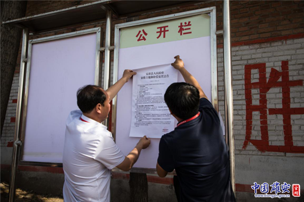 征遷安置工作堅(jiān)持“一碗水端平”“一把尺子量到底”。圖為駐村干部在馬莊村張貼公告。中國雄安官網(wǎng)記者朱偉琳 攝