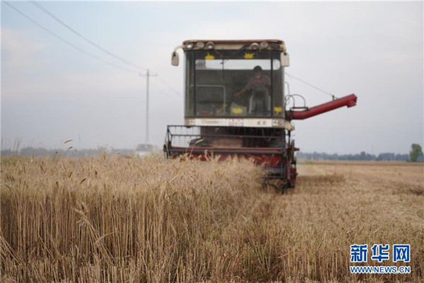 6月13日,雄安新區(qū)大王鎮(zhèn)小王村村民在收獲小麥。 近日,雄安新區(qū)小麥陸續(xù)成熟,當(dāng)?shù)卮迕駬屪マr(nóng)時(shí)進(jìn)行收獲。 新華社記者 朱旭東 攝