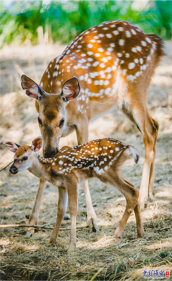 梅花鹿“安安”和“女兒”。中國(guó)雄安官網(wǎng)記者馬夢(mèng)迪 攝