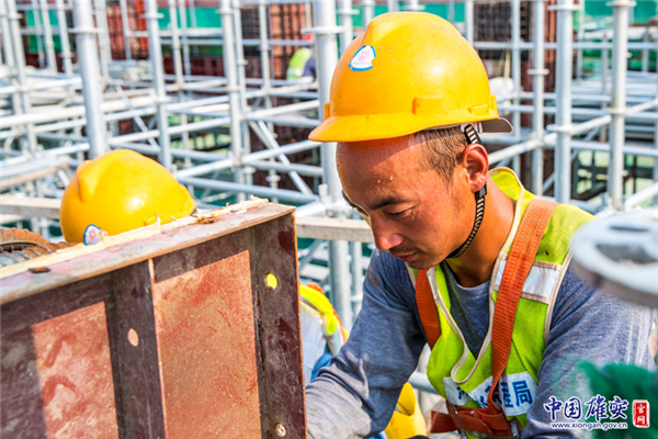 白洋淀引黃大樹劉泵站工程施工現(xiàn)場(chǎng),新區(qū)建設(shè)者為了新區(qū)的明天更加美好,冒著酷暑炎熱,默默付出,他們是值得敬佩的人。中國雄安官網(wǎng)記者馬夢(mèng)迪 攝