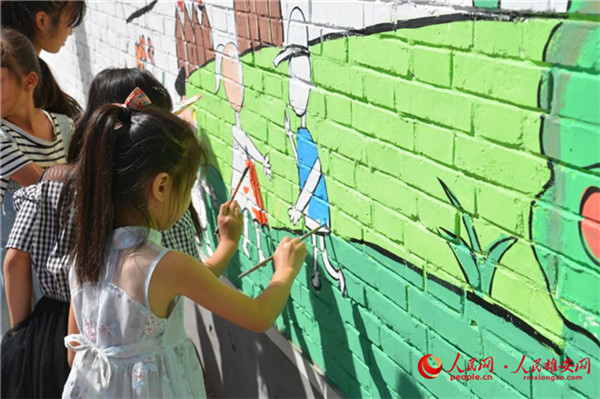 孩子們在進(jìn)行墻繪。朱峙委攝