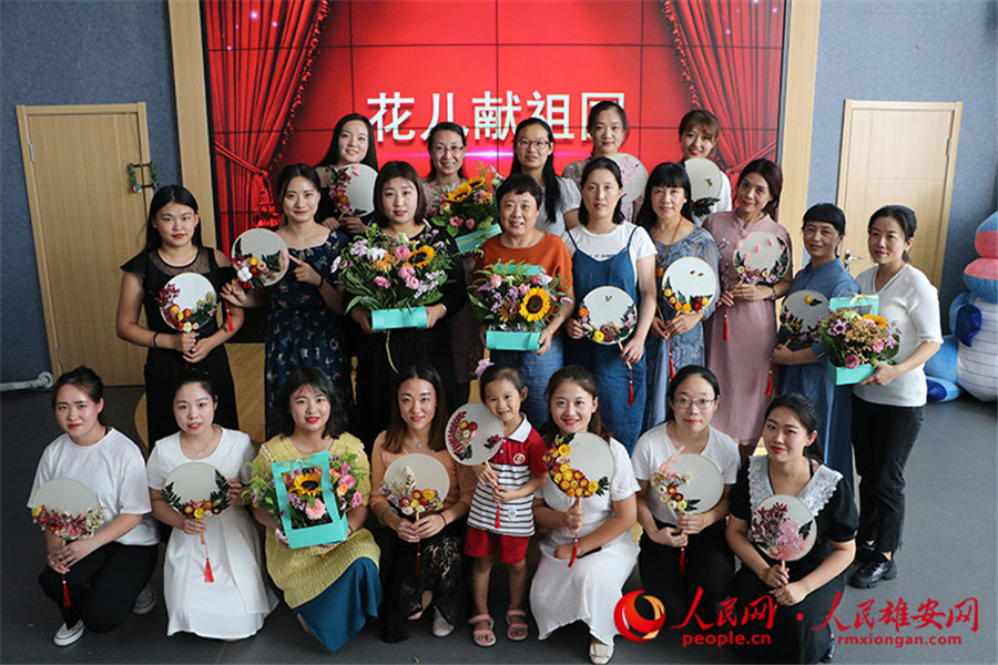 教師節(jié)當(dāng)天,北京市六一幼兒院雄安院區(qū)舉辦“花兒獻(xiàn)祖國,傳承經(jīng)典文化”主題活動,老師和孩子們一起用插花、制作團(tuán)扇等形式慶祝新中國成立70周年和第35個教師節(jié)。