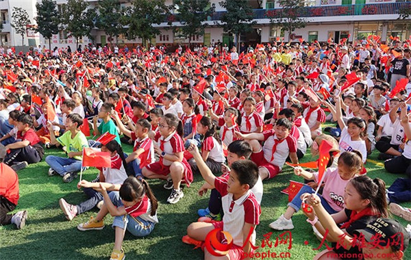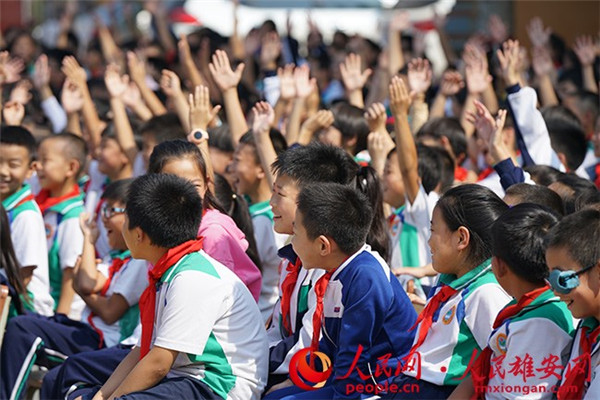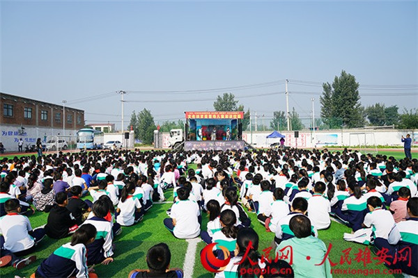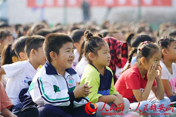 圖為安新縣第二小學(xué)的學(xué)生正在觀看演出。劉師豪 攝