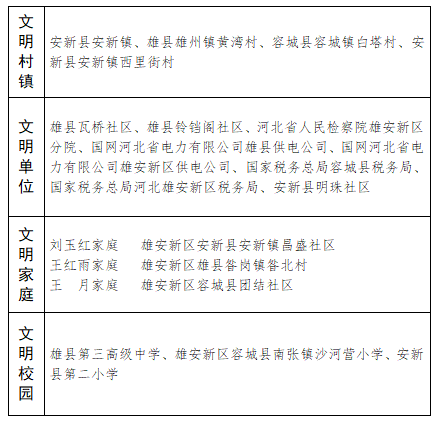 河北省文明村鎮(zhèn)、文明單位、文明家庭保留稱號名單(雄安新區(qū)部分)