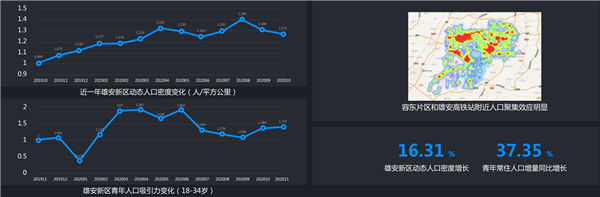 通過《報(bào)告》可以看出,雄安新區(qū)對青年人口的吸引力在持續(xù)提升。2020 年11月,雄安青年常住人口較2019 年同期增長了37.35%。越來越多的青年人來到雄安,為雄安注入了活力。