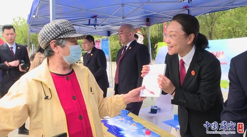 活動現(xiàn)場,工作人員向新區(qū)群眾普及知識產(chǎn)權(quán)常識。中國雄安官網(wǎng)記者毛鶴然 攝