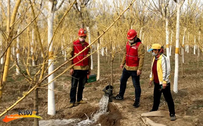共產(chǎn)黨員服務(wù)隊(duì)巡視檢修千年秀林灌溉用電設(shè)備。冀洋 圖
