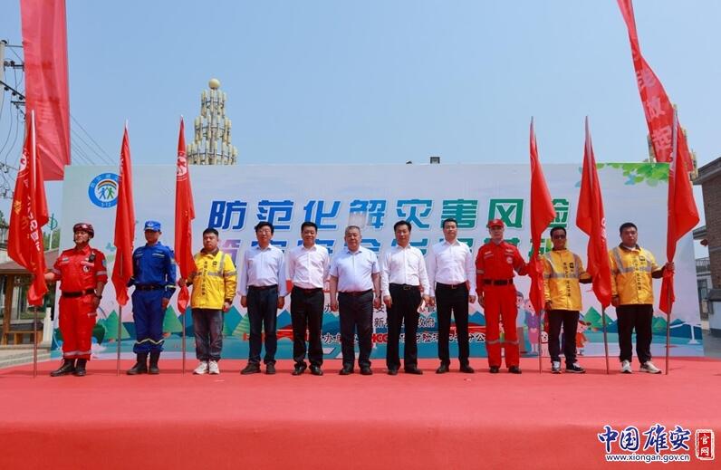 在全國(guó)防災(zāi)減災(zāi)日宣傳活動(dòng)現(xiàn)場(chǎng),戴泊生向安新小學(xué)頒發(fā)省級(jí)地震科普教育示范學(xué)校牌匾,劉樹(shù)軍向東淀頭村頒發(fā)全國(guó)綜合減災(zāi)示范社區(qū)牌匾,兩位領(lǐng)導(dǎo)共同向雄州救援隊(duì)、雄風(fēng)救援隊(duì)、藍(lán)天救援隊(duì)、美團(tuán)代表隊(duì)等新區(qū)安全宣傳志愿者隊(duì)伍代表授旗。中國(guó)人民財(cái)產(chǎn)保險(xiǎn)股份有限公司雄安分公司籌建負(fù)責(zé)人張友林為活動(dòng)致開(kāi)幕詞,中國(guó)福利基金會(huì)支持雄安公益基金執(zhí)行主任、北京支持雄安產(chǎn)業(yè)發(fā)展促進(jìn)會(huì)常務(wù)副會(huì)長(zhǎng)兼秘書(shū)長(zhǎng)彌雪向雄安新區(qū)捐贈(zèng)了高空細(xì)水霧滅火消防車(chē)。