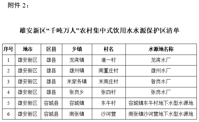 2.雄安新區(qū)“千噸萬(wàn)人”農(nóng)村集中式飲用水水源保護(hù)區(qū)清單