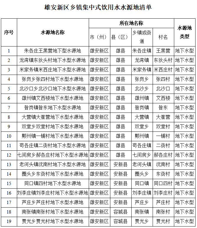 1.雄安新區(qū)鄉(xiāng)鎮(zhèn)集中式飲用水水源地清單