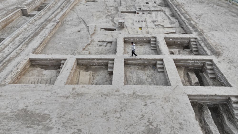這是雄安新區(qū)南陽遺址考古發(fā)掘現(xiàn)場(chǎng)(3月26日攝,無人機(jī)照片)。新華社記者牟宇 攝