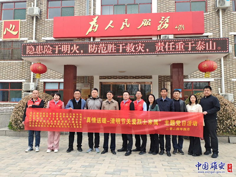 中國雄安官網(wǎng)4月3日電 青山埋忠骨,不忘英烈魂。為緬懷革命先烈,切實營造崇尚英烈、學習英烈、關愛烈屬濃厚氛圍,進一步增強烈屬的榮譽感、幸福感,4月1日至2日,雄安新區(qū)公共服務局聯(lián)合河北雄安雄鼎人力資源管理有限公司、禾躍科技(河北雄安)有限公司、河北雄安新區(qū)關愛退役軍人基金會,在雄安新區(qū)范圍內共同開展“真情送暖-清明節(jié)關愛烈士家屬”活動。