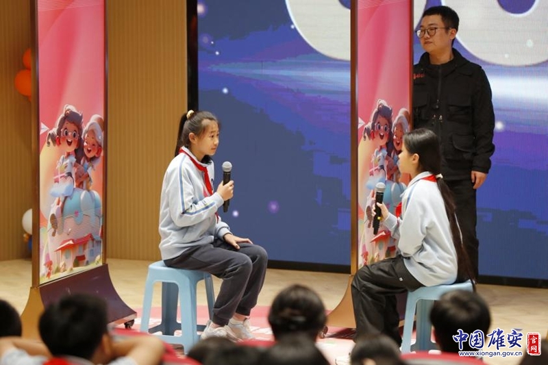 在傳聲游戲中,學(xué)生將現(xiàn)場(chǎng)記憶的《未成年人網(wǎng)絡(luò)保護(hù)條例》內(nèi)容傳遞給下一名同學(xué)。中國(guó)雄安官網(wǎng)李鑫 攝