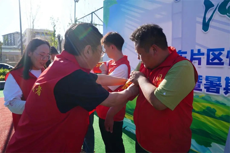 活動現(xiàn)場,悅?cè)菪W(xué)志愿者代表朱皓萱宣讀《“珍愛生命,預(yù)防溺水”倡議書》,與會領(lǐng)導(dǎo)為各組團護河行動志愿服務(wù)隊護河長佩戴了袖章,容東管委會相關(guān)負責(zé)同志宣布暑期“護河行動”活動正式啟動。