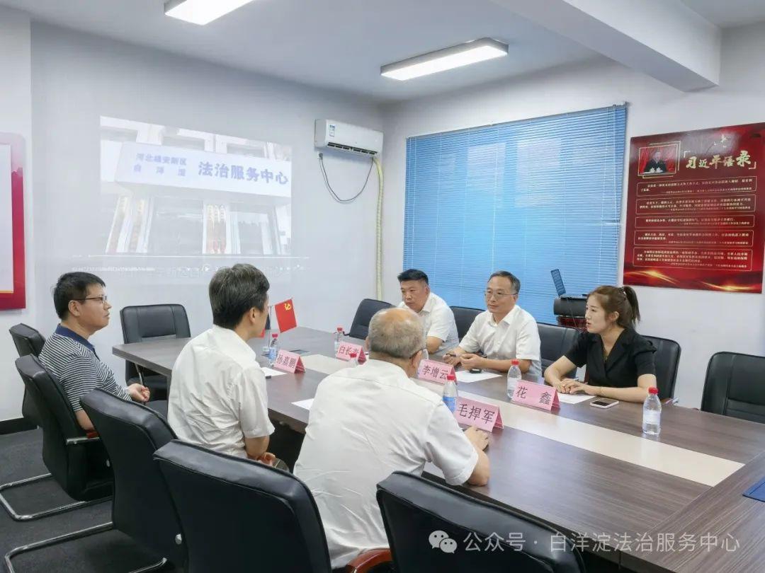 8月20日,河北雄安新區(qū)白洋淀法治服務(wù)中心高級(jí)顧問(原司法部全面依法治國研究中心副主任)李富成、新區(qū)黨群工作部副部長孫嘉鵬、雄安新區(qū)政務(wù)服務(wù)中心副主任毛捍軍到中心調(diào)研指導(dǎo)工作。