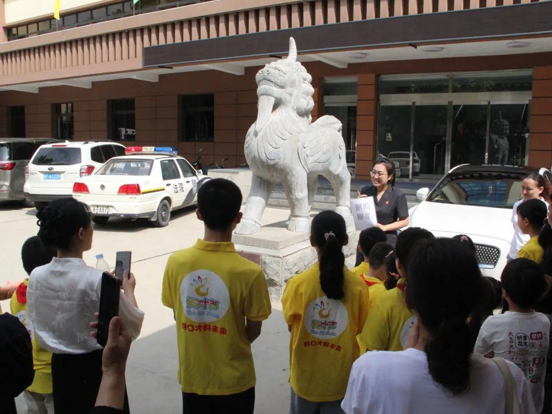 隨后,同學們來到法院前院“獬豸”雕像處,干警從“獬豸”的來源含義到“法”字的演變發(fā)展,生動地向同學們展示了法律的淵源,引發(fā)了同學們極大的興趣。