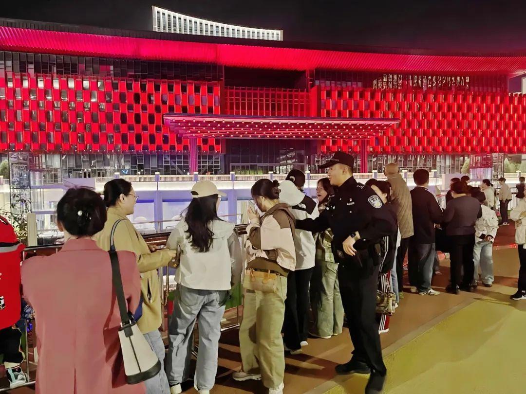 人流如織中,“紅藍”警燈默默守護,民警用實際行動為游客假期出行筑起一道安全防線。