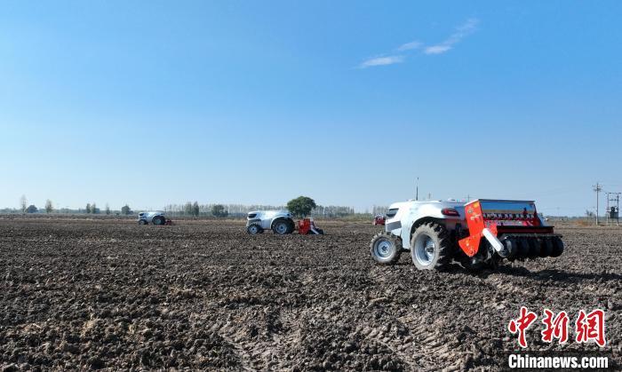 10月22日,河北雄安新區(qū)安新縣端村鎮(zhèn)關(guān)城二村一農(nóng)田內(nèi),幾臺(tái)“鴻鵠T70”電動(dòng)智能拖拉機(jī)正在進(jìn)行秋播作業(yè)。據(jù)了解,今年雄安新區(qū)公共服務(wù)局通過(guò)實(shí)施“雄安新區(qū)農(nóng)業(yè)全產(chǎn)業(yè)鏈數(shù)字化轉(zhuǎn)型示范應(yīng)用場(chǎng)景項(xiàng)目”,重點(diǎn)打造“數(shù)字決策+無(wú)人農(nóng)機(jī)”的無(wú)人農(nóng)場(chǎng)示范場(chǎng)景,依托國(guó)家數(shù)字農(nóng)業(yè)區(qū)域(京津冀)創(chuàng)新分中心與中國(guó)科學(xué)院雄安創(chuàng)新研究院(籌)第三代新能源智能農(nóng)機(jī)技術(shù),在雄安新區(qū)實(shí)施5000畝農(nóng)田“耕、種、管、收”全鏈條環(huán)節(jié)無(wú)人化示范作業(yè)。